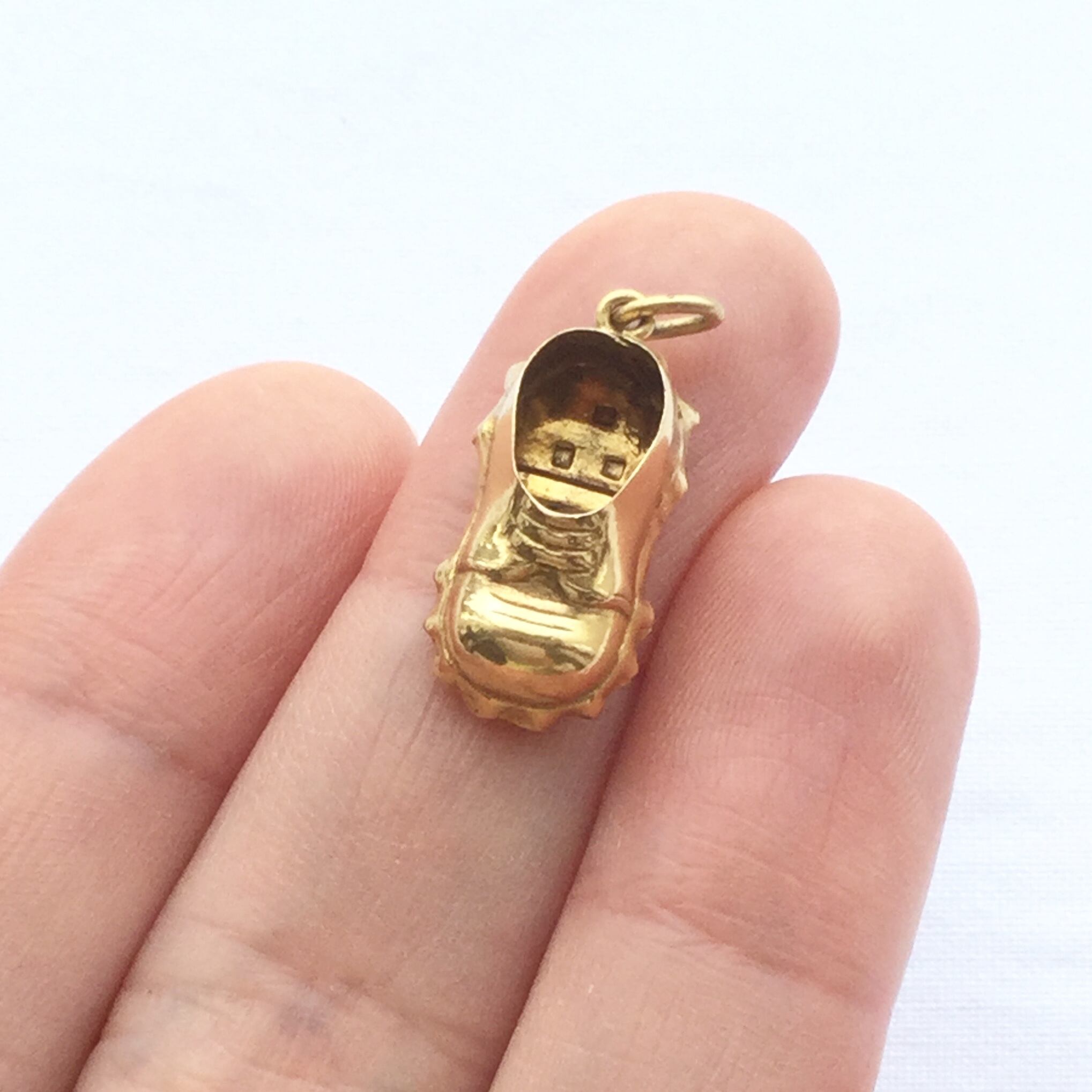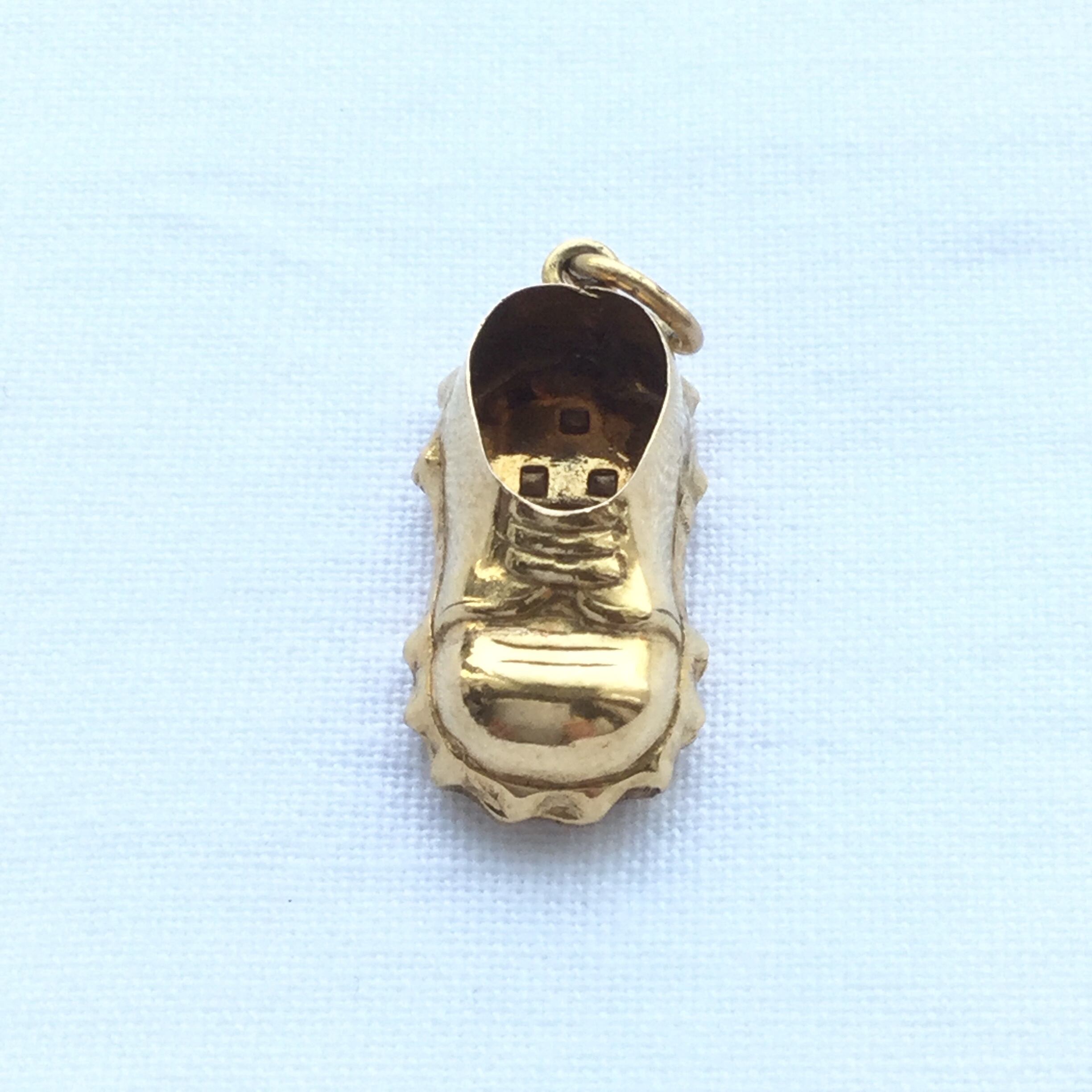 裏まで細かくデザインされた可愛らしい金の小さな靴。