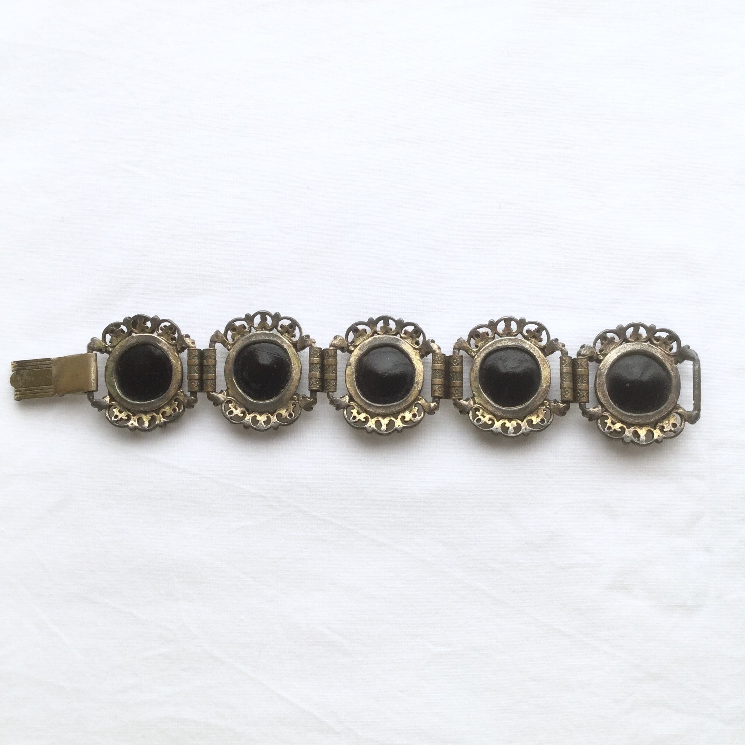 アンサインですが、Judy Leeという40年代末から70年代にあったコスチュームジュエリーブランドのブレスレットだといっていいと思います。