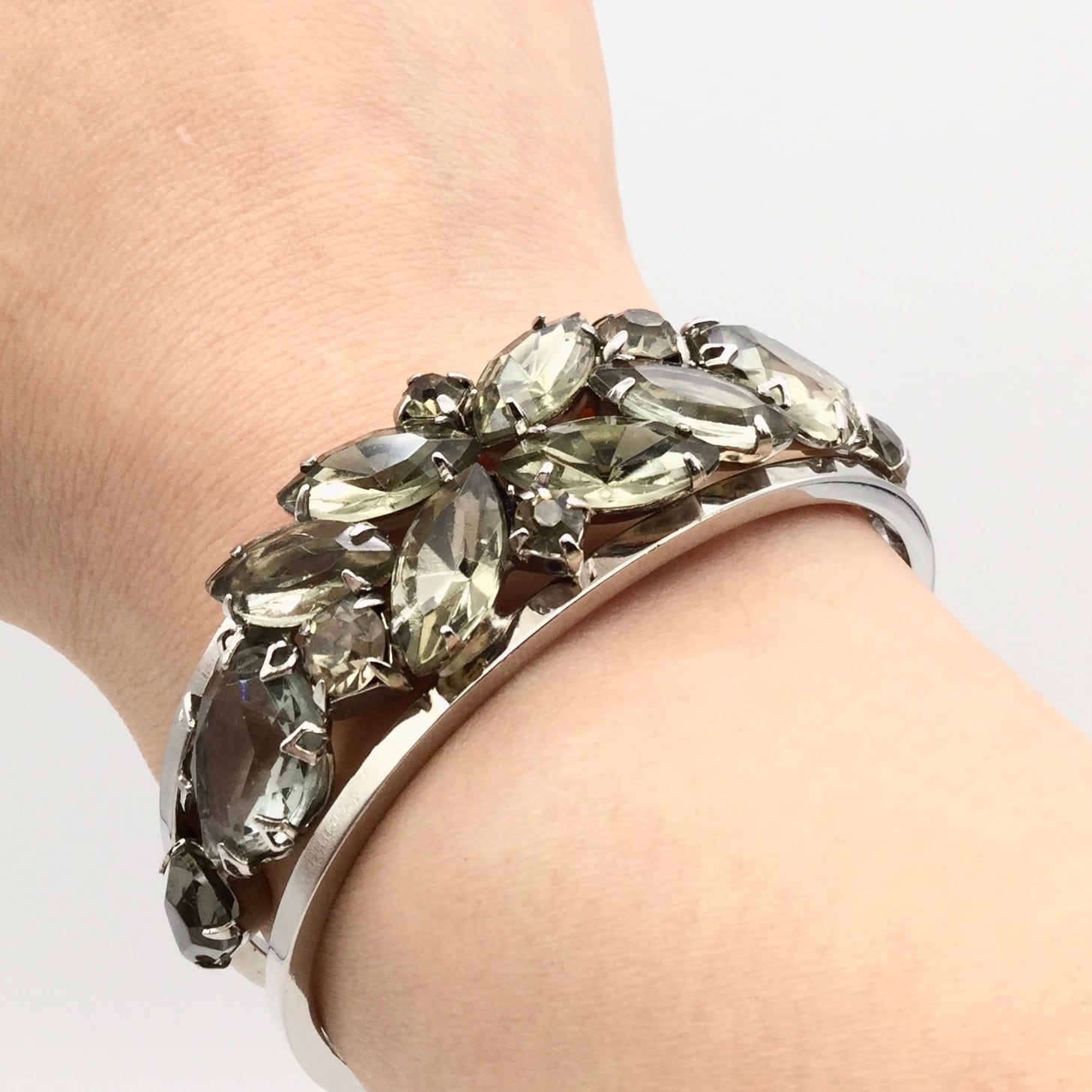 ロジウムシルバーにスモーキーグレーのストーンが美しいブレスレット。