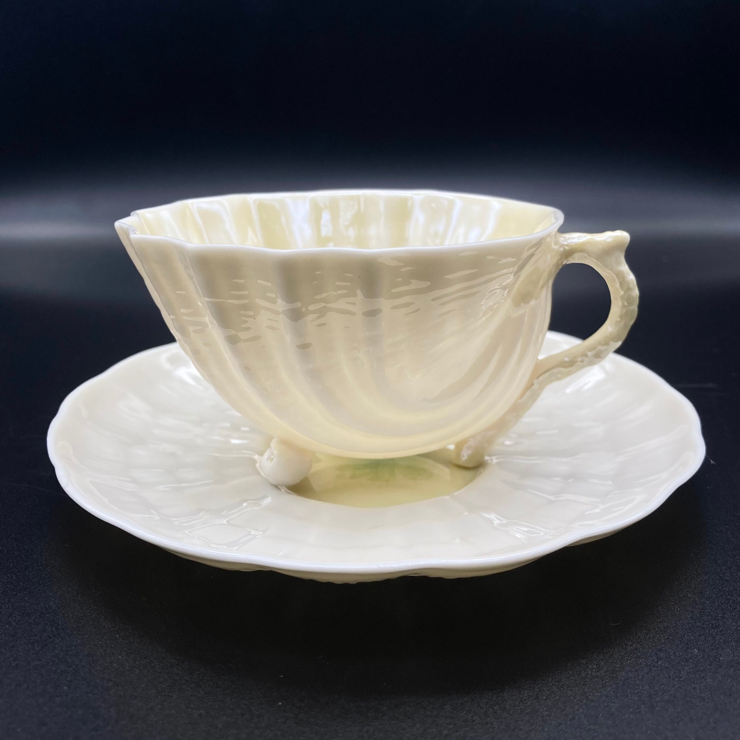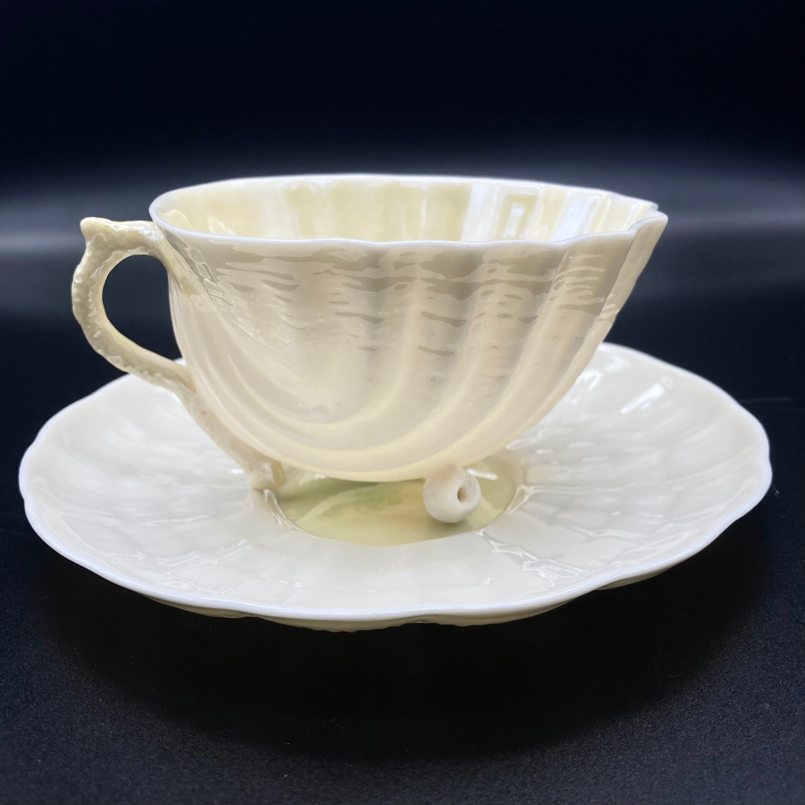 65〜80年 Belleek Neptune 6th green mark カップ & ソーサー