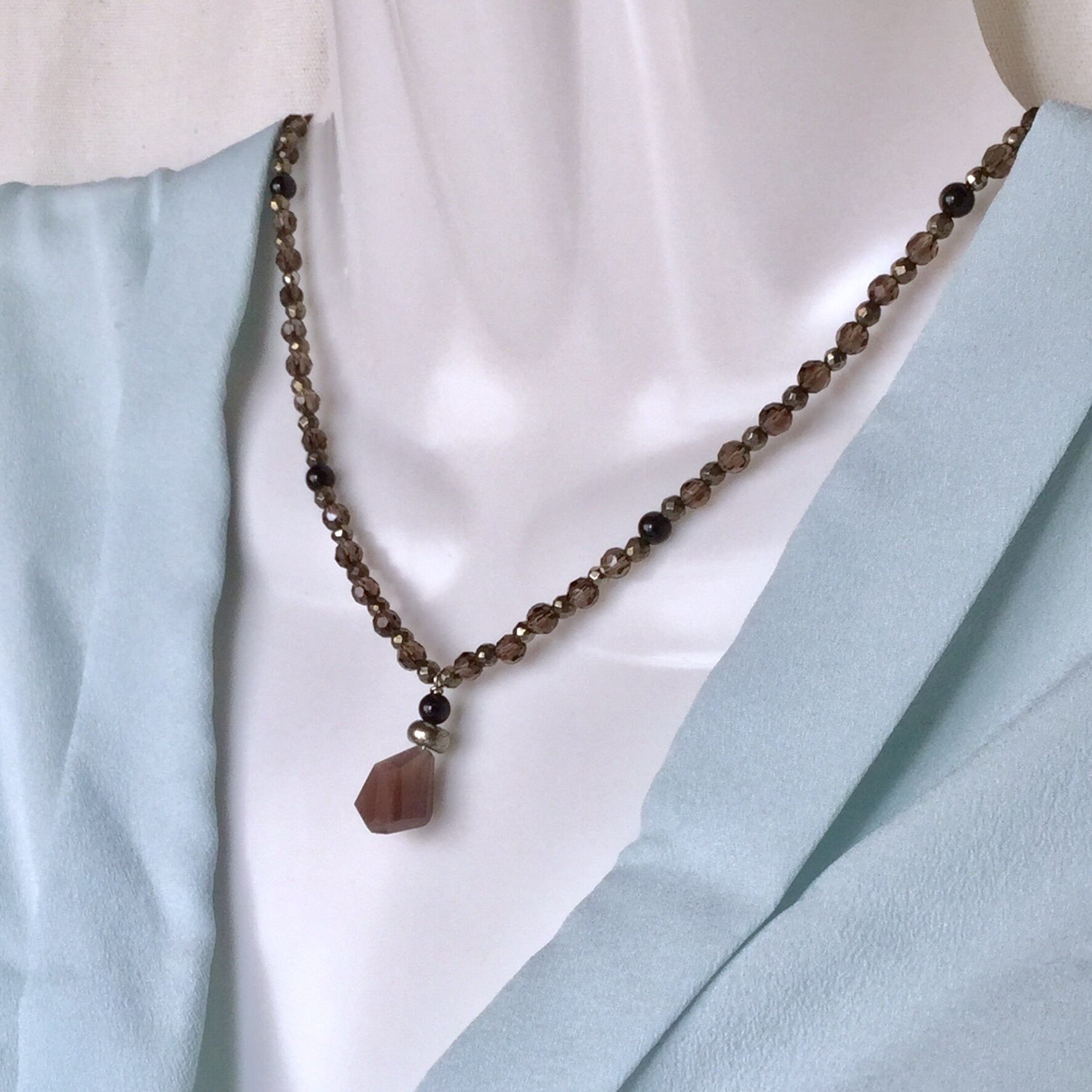 落ち着いた印象のスモーキークォーツも、カットが施されたものは輝きが増して華やかです。